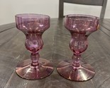 - WV Specialty Iridescent Pink Glass Handblown Candlesticks Pair Candle Holders