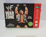 The product is the original box for the video game "WWF War Zone" for the Nintendo 64 console. This authentic box includes the poster and is specifically designed for the N64 platform. It is a collector's item for fans of wrestling games and retro gaming enthusiasts, providing a nostalgic piece of gaming history from the era.