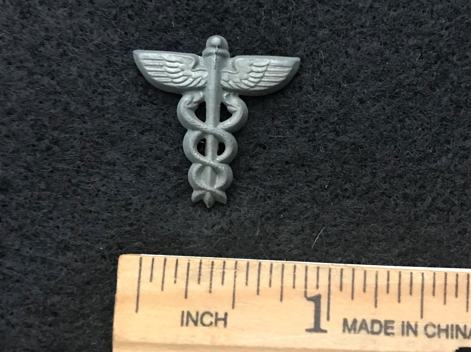 Hello and welcome to our special listing of a WWII Ger-man Medics Pin. This is a 100% authentic piece. Notice the German Thunderbird. These were made to stab through the heavy wool uniforms and fold back to stay tightly on. Please see our pictures and if you have any questions feel free to ask.