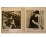 The first press kit photo measure 8 x 11 inches and is in near mint condition. It has creases. The second press kit photo measure 8 x 11 inches and is in near mint condition. It has edge dings.