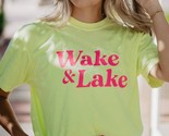 - Wake and Lake Graphic Cotton Tee Neon Yellow and Hot Pink