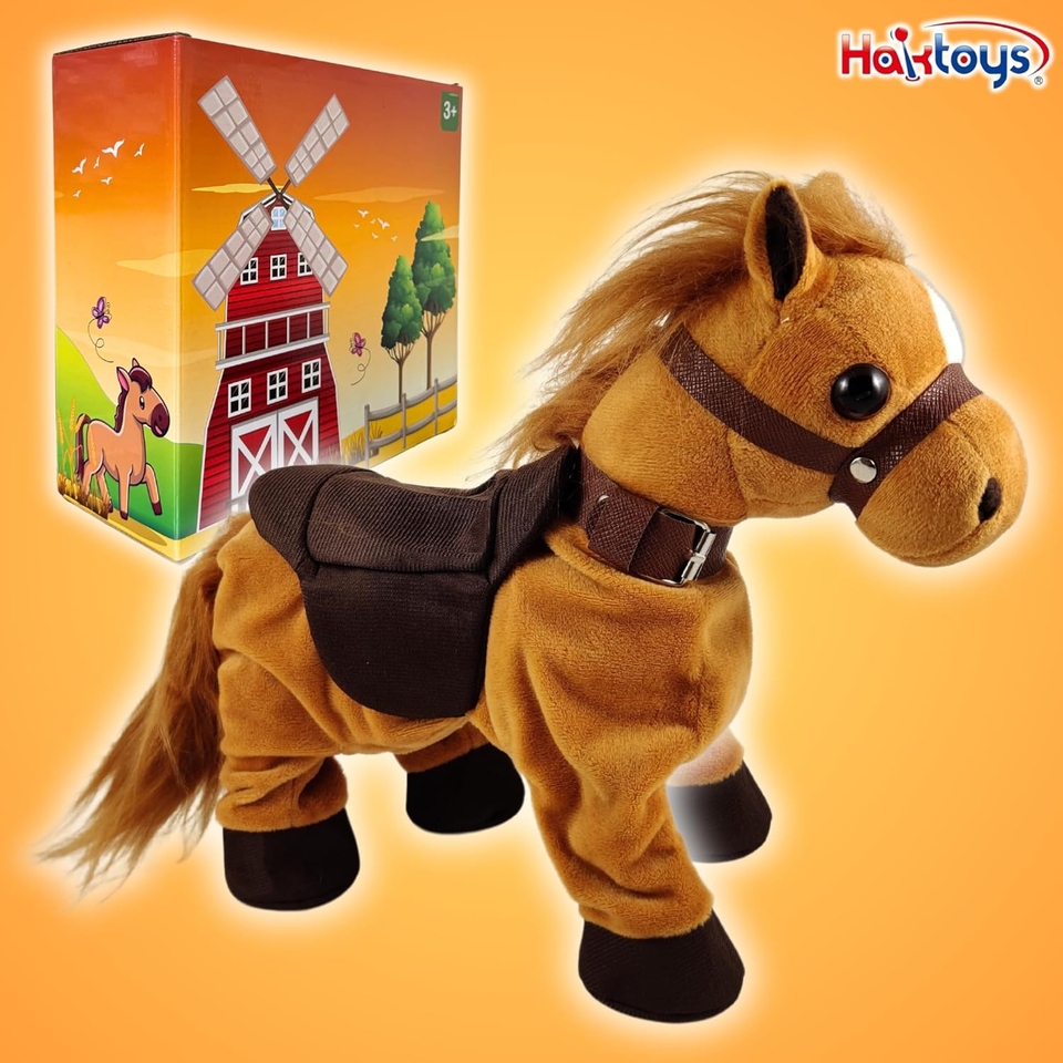 ? Interactive Walk Along Horse: This adorable toy walks, neighs, and shakes its body while playing 9 fun, child-friendly songs. The wiggly movements are perfectly synchronized with the music.