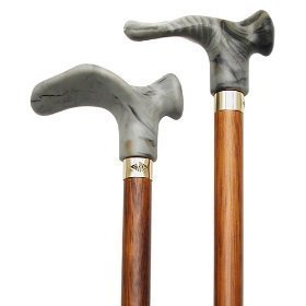 Walking Stick cane - With Contour Grip. Walnut stain Grey Left Handle, this cane is designed to fit the hand like a glove with its palm grip handle. This cane is very secure and comfortable and has a weight capacity of 250 pounds. This ergonomic wood cane is ideal for arthritis sufferers. It distributes weight across the entire palm. Height approx: 36 - 37 "