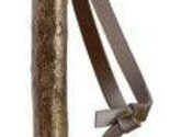 Natural hazelwood knob handle walking stick with polished natural bark and genuine leather strap; approximately 36" long.
