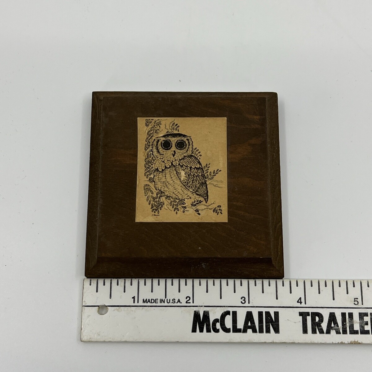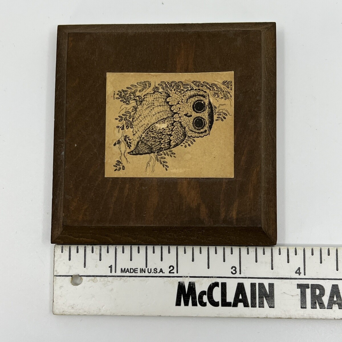 - Wall Art Owl On Wooden Plaque Miniature Signed By K.Trower MCM