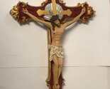 Your purchase is for a beautiful ornate red gold crucifix. It. measures 10.5" h x 6.25". Made of Resin