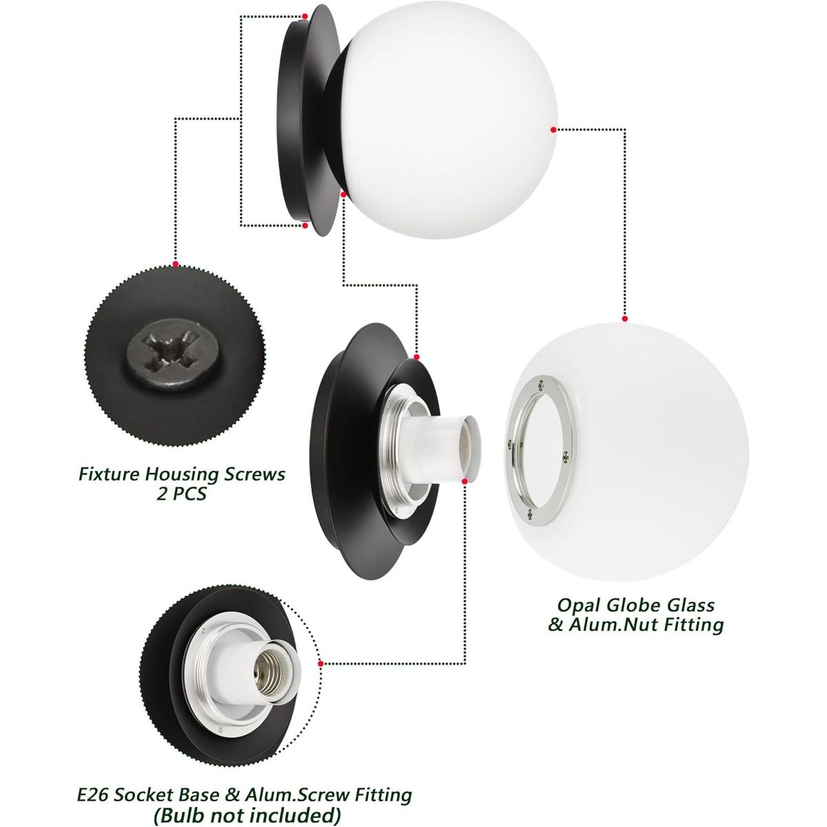 EXCEPTIONAL DESIGN - The black wall sconce has its roots in mid-century design, featuring a spherical Opal glass shade to provide bright, yet diffused lighting to your home. Perfect to complement contemporary or transitional home decor, suitable for any room of your home, such as bathroom, living room, hallway, etc.