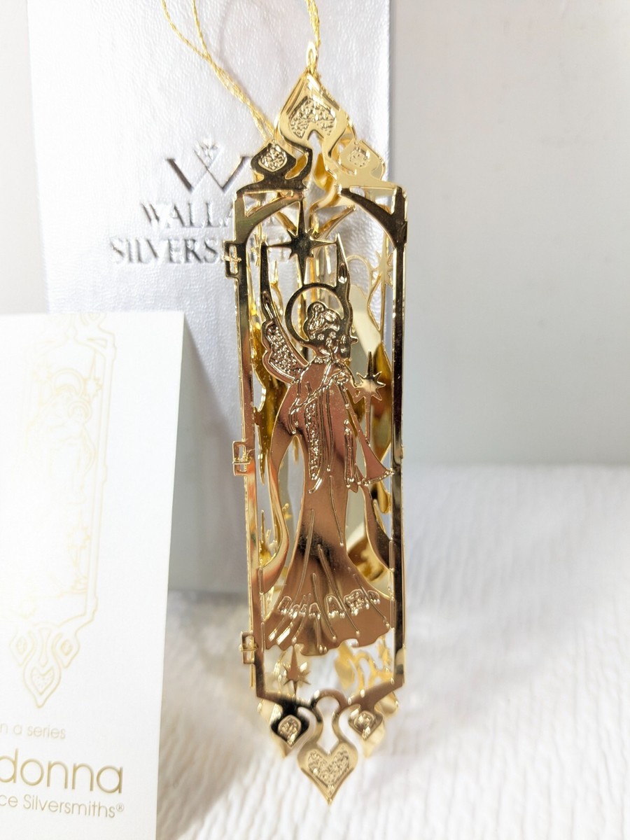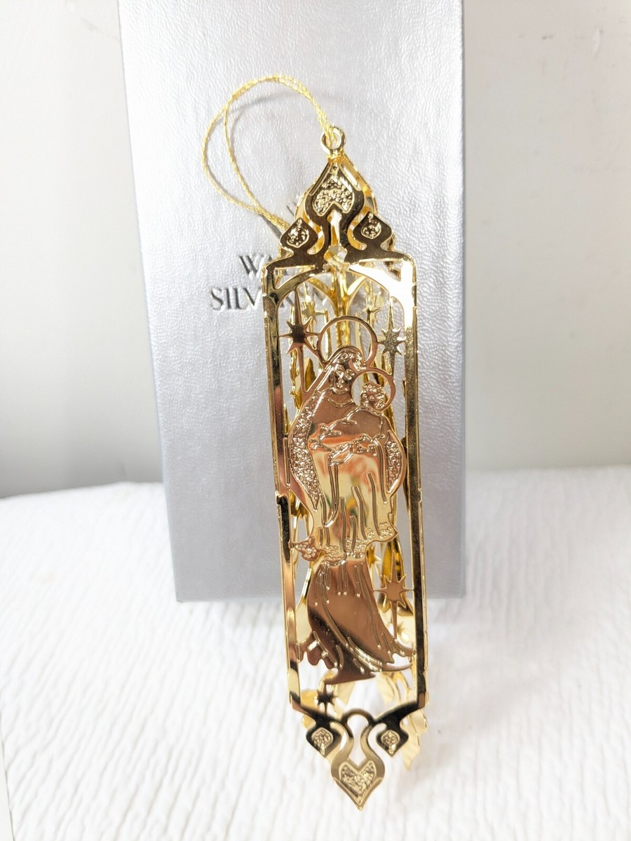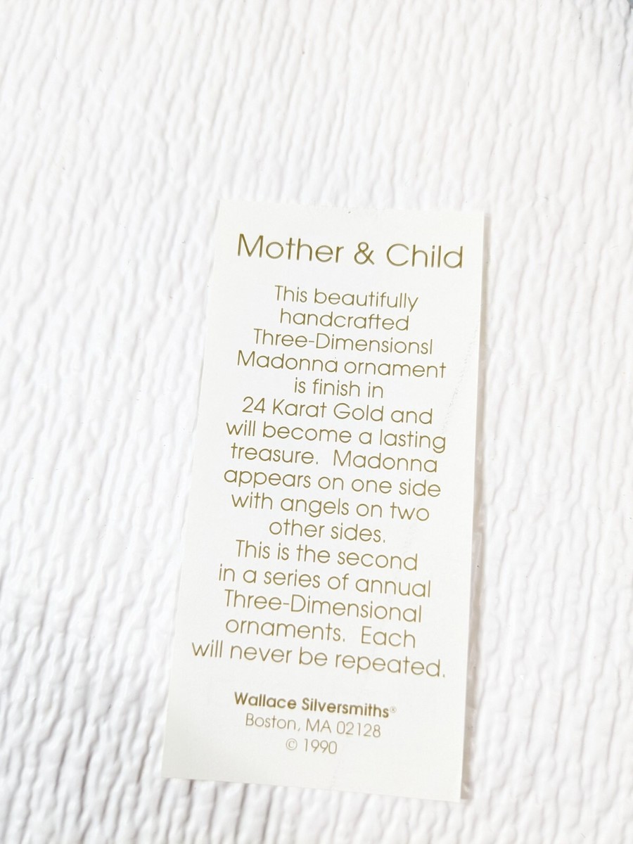 - Wallace Silversmiths Madonna child Christmas ornament 24 Karat Gold plate 1990