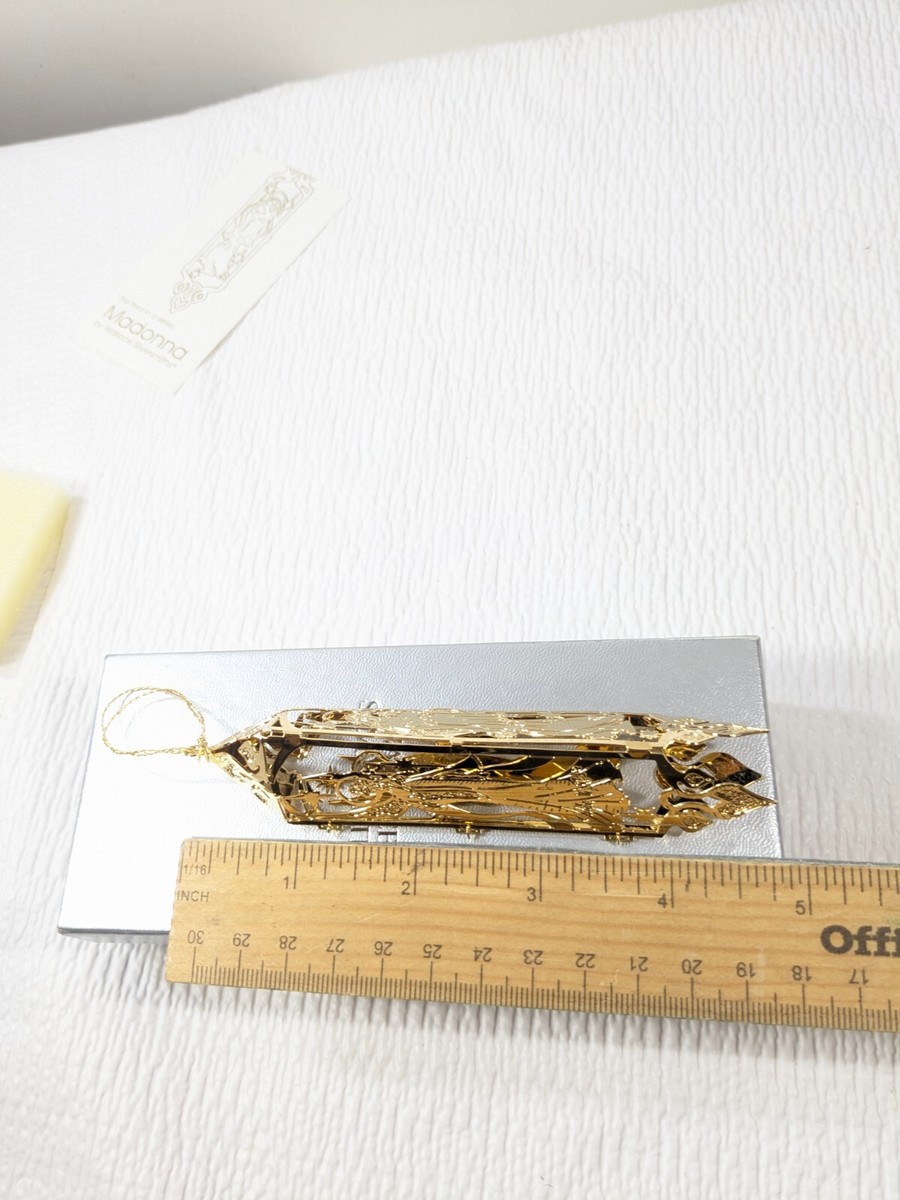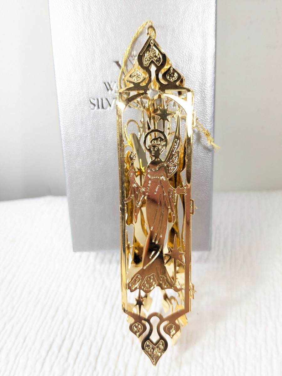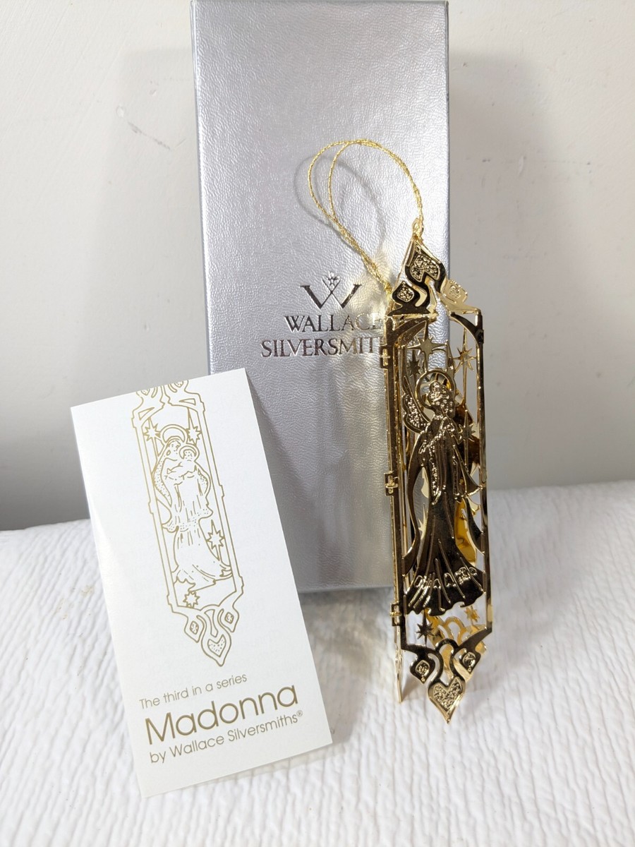 - Wallace Silversmiths Madonna child Christmas ornament 24 Karat Gold plate 1990