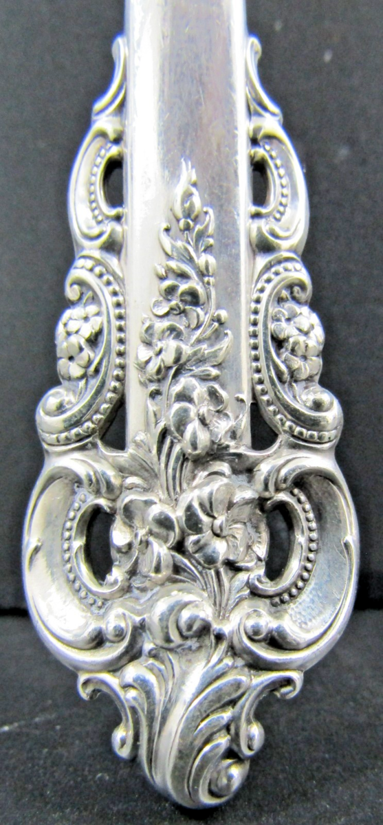Grande Baroque sterling silver flatware pattern by Wallace Silversmiths. This highly ornate pattern, featuring intricate carvings of flowers and acanthus leaves inspired by the Renaissance, was first introduced in 1941 and has since become a very popular sterling silver design.