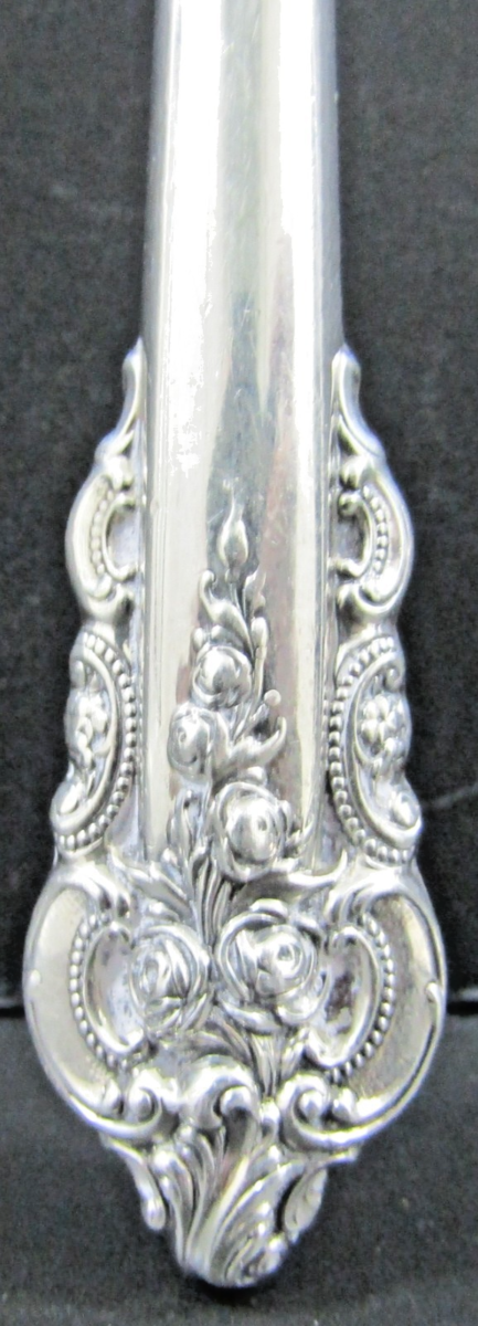 Grande Baroque sterling silver flatware pattern by Wallace Silversmiths. This highly ornate pattern, featuring intricate carvings of flowers and acanthus leaves inspired by the Renaissance, was first introduced in 1941 and has since become a very popular sterling silver design.
