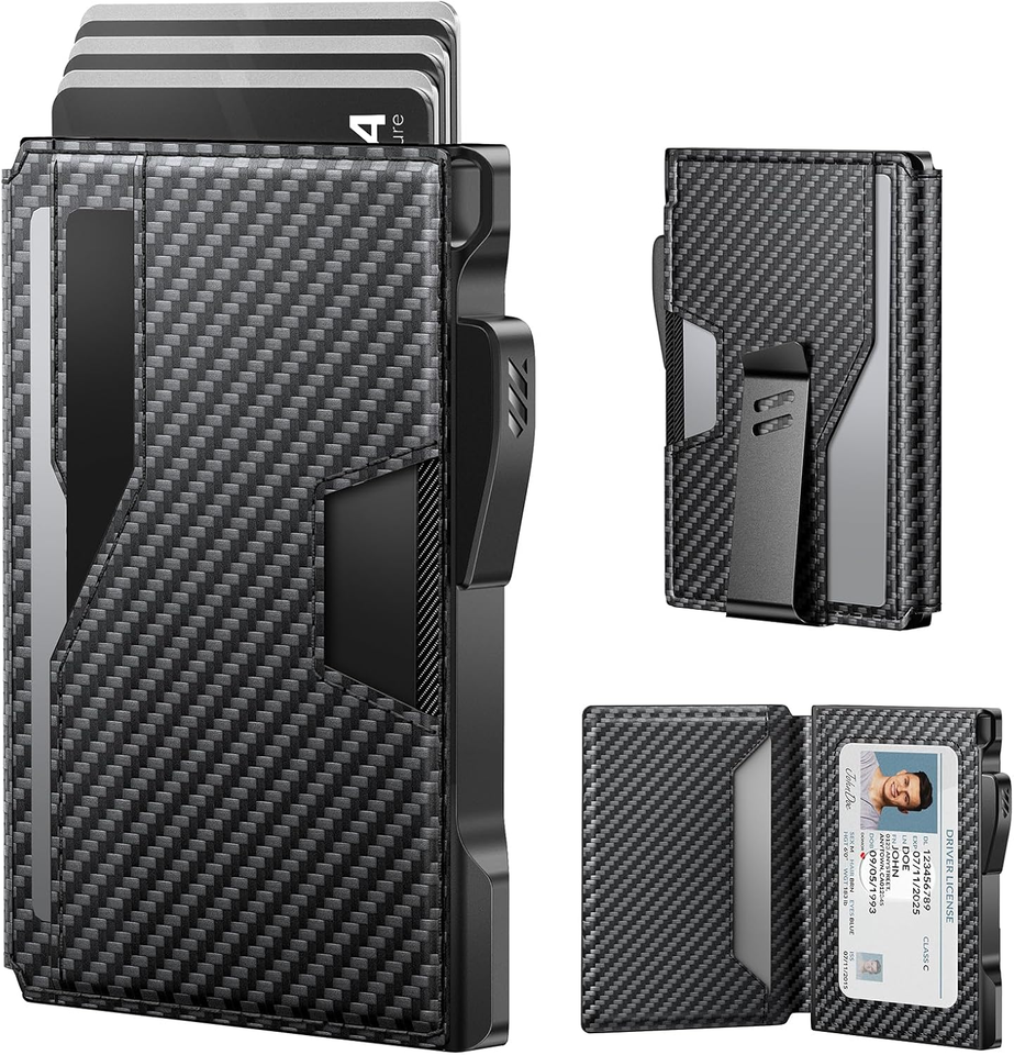 Quick Card Access: Designed for speed, this wallet's smart pop up mechanism allows you to instantly view and select your cards. The front and back pocket provide 3 quick-release option for your frequently used card, ensuring they're always within reach.