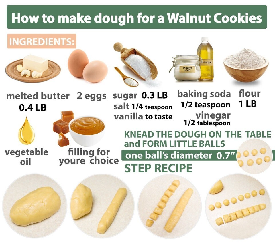 Sweet Russian Oreshki Pastry Cookie Nutlets . The size of the finished walnut 1.35 * 1.3 * 1.1 inches