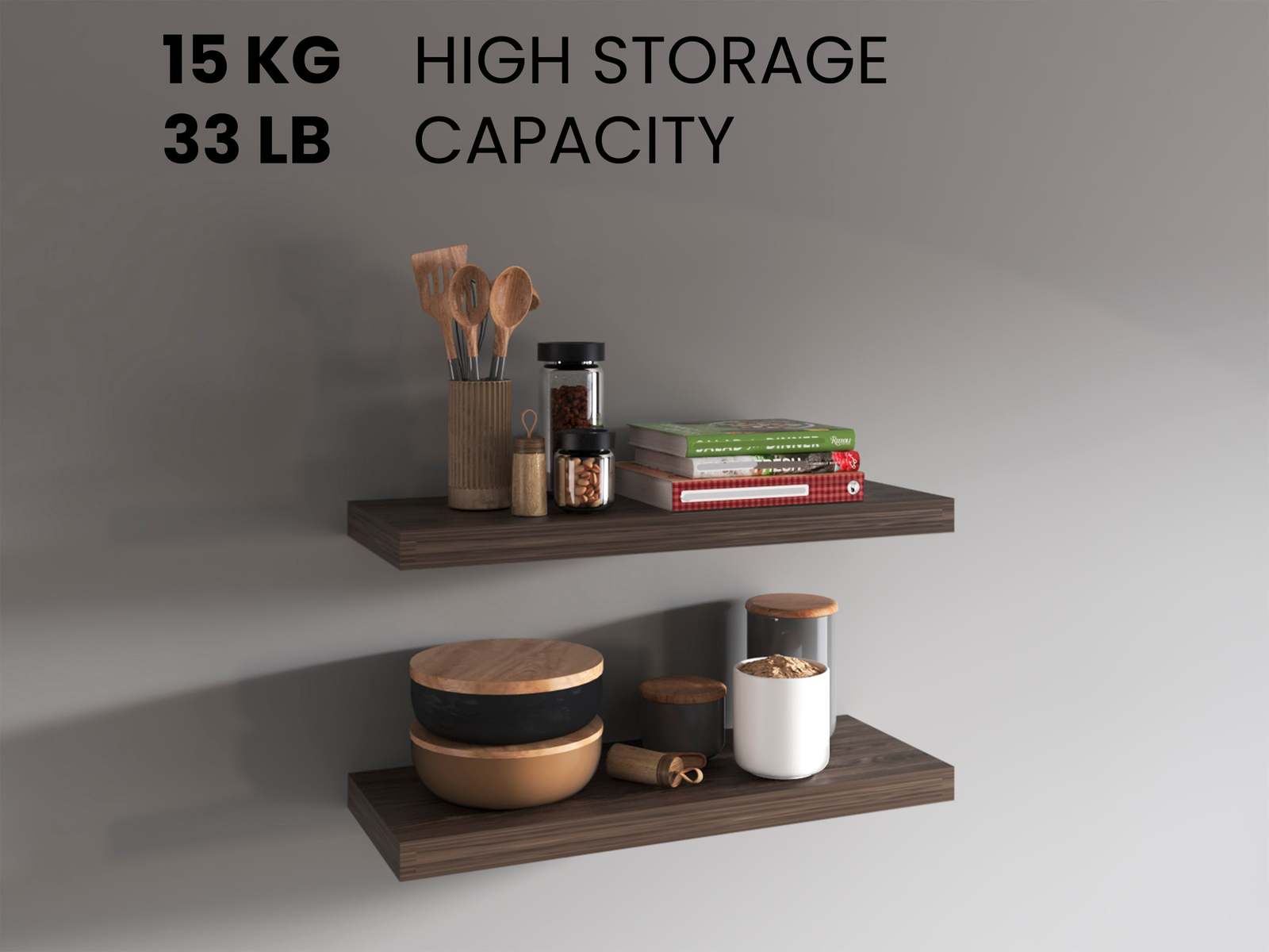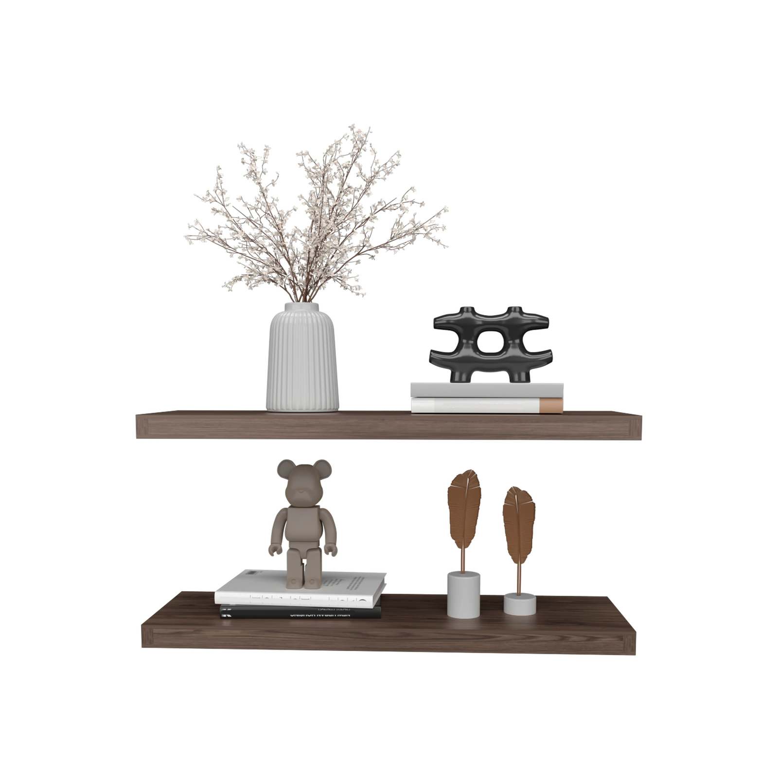 - Walnut Floating Shelves - 2-Tier Wall Mounted Storage