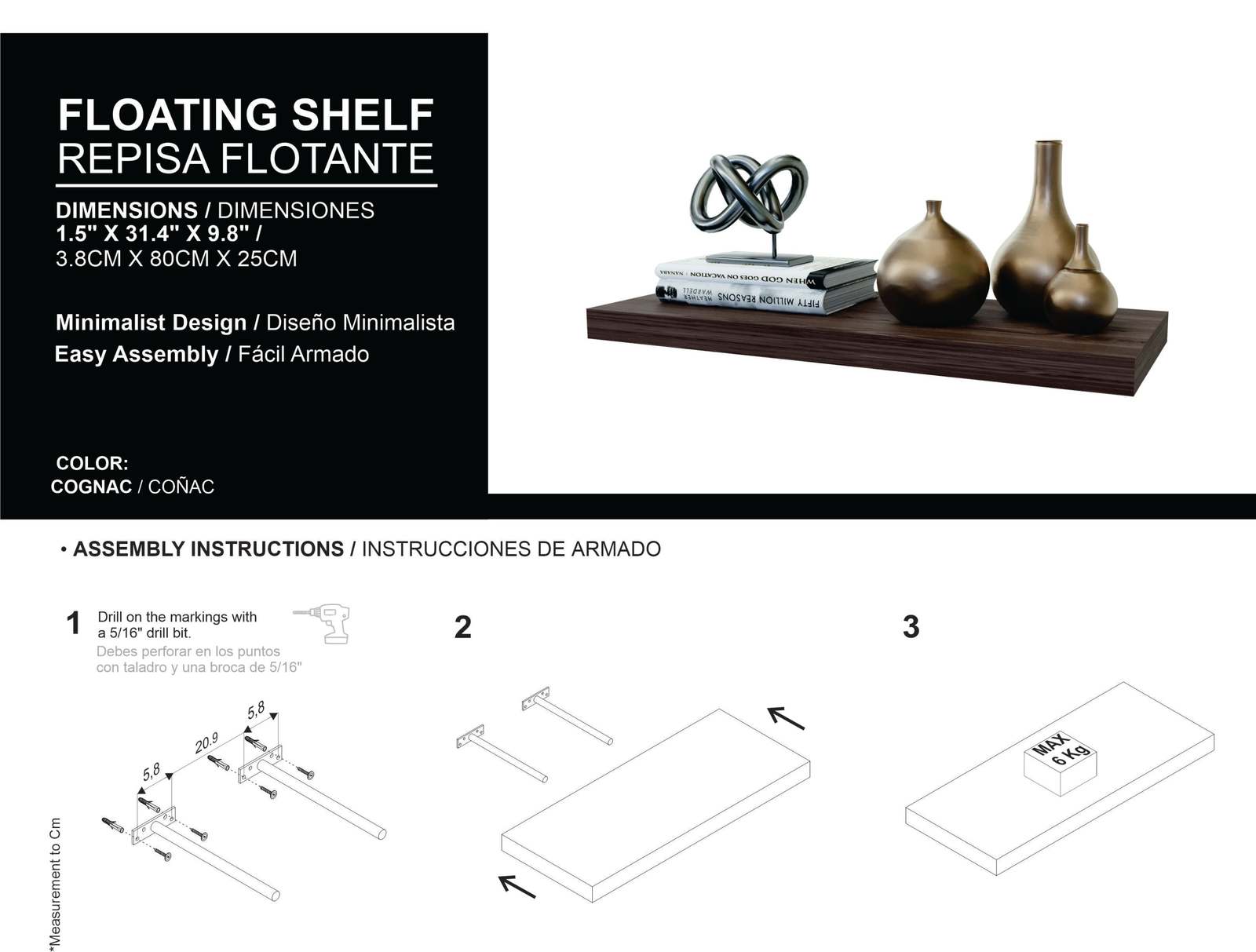 Assembled Length (in.) 9.80 Assembled Width (in.) 31.50 Assembled Height (in.) 1.50 Weight (lbs) 14.00