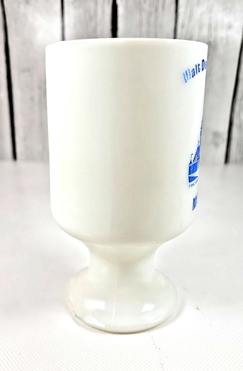 - Walt Disney World Mom Milk Glass Pedestal Mug Blue Castle Vintage 5.5x3in USA