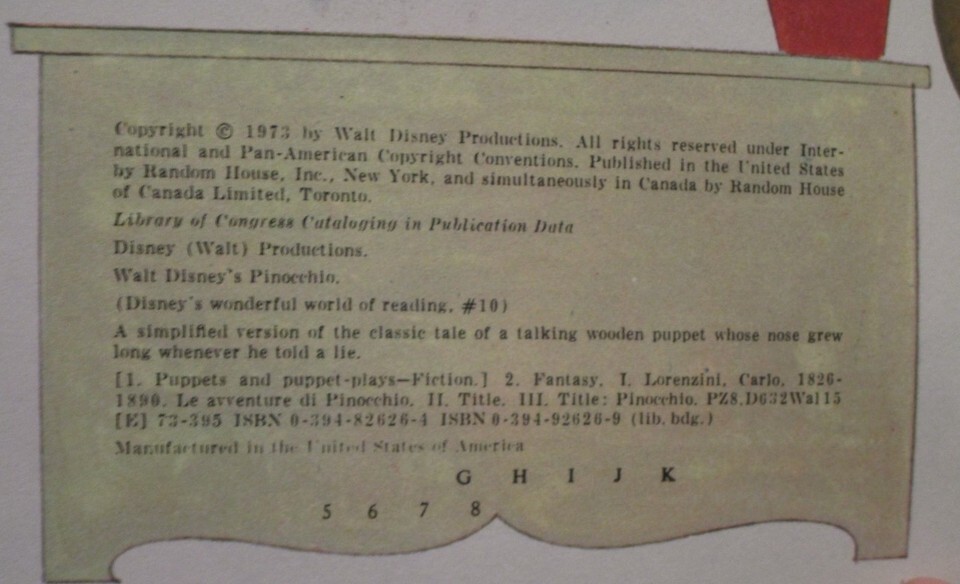 - Walt Disney's Pinocchio & his Puppet Show Avd. by Walt Disney Prod (1973,Hard)