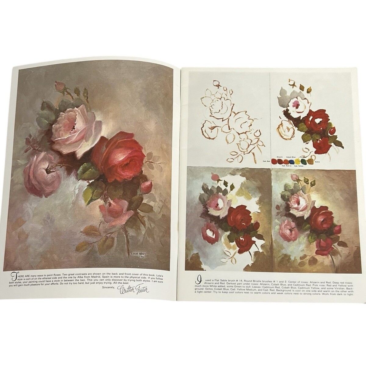 Walter Foster book, Lola Ades roses, flower painting guide, vintage art booklet, how to paint flowers, floral painting tutorial, 1970s art book, oil painting roses, decorative painting book, art instruction manual