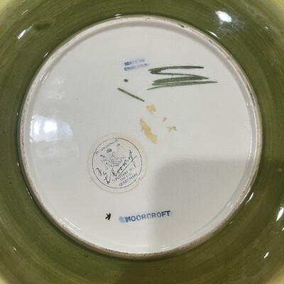 This beautiful 10" plate is a stunning example of Walter Moorcroft's exquisite pottery work. The intricate hibiscus design is expertly crafted in clay, showcasing the skill and attention to detail that went into its creation. This decorative plate is a must-have for any collector of high-quality pottery and would make a wonderful addition to any home decor.