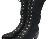 1 Used Pair No Box By Walter Steiger BLACK ELASTIC LEATHER Boot Stretch Lace Up Fabric Silver Hardware Vintage 35.5 USA 5.5 Used! (Box #22)