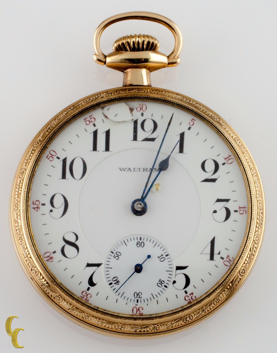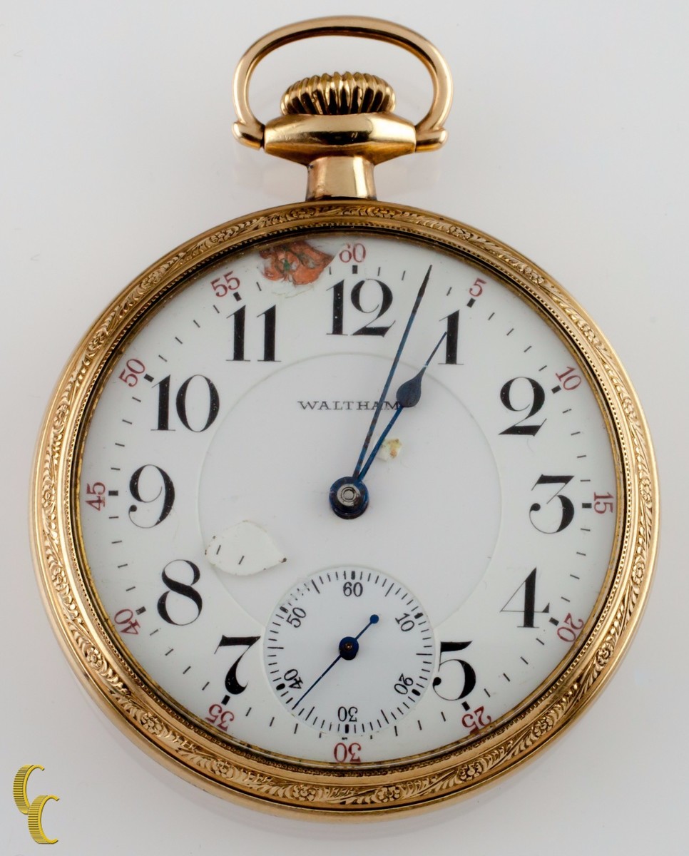 - Waltham Aperto Viso 14k Gold Filled Giallo Tasca Orologio 23 Gioielli Misura 16