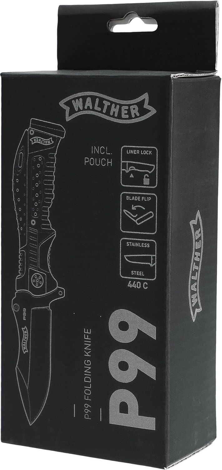 - Walther P99 Linerlock Folding Knife 4" 440C Steel Blade Black Synthetic Handle