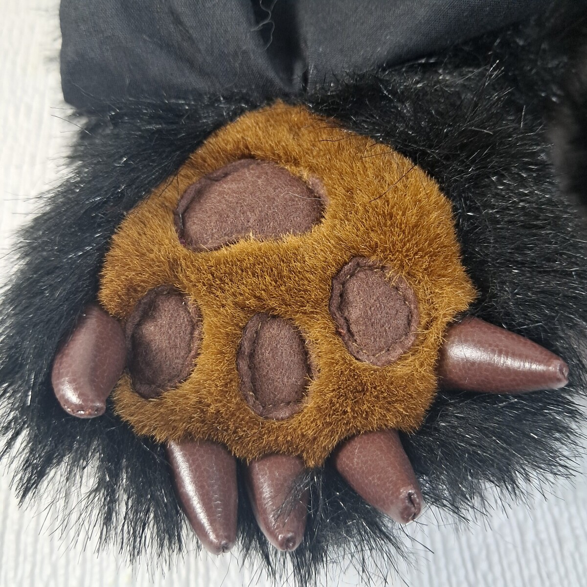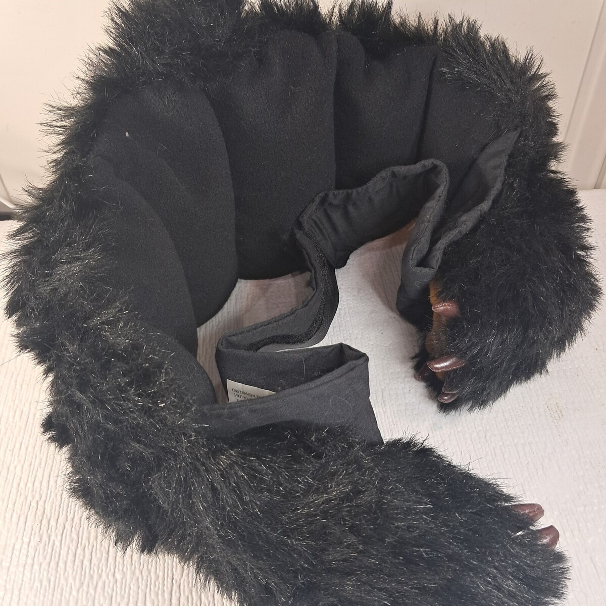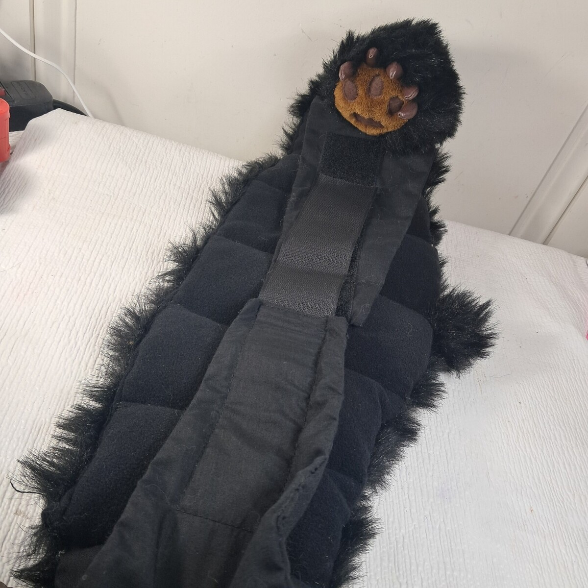 By Kits N Kaboodle, 2004. Black faux fur with brown bear paws. Aromatherapy wrap. Hook loop belt. Very good condition.