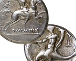 Warrior on Horseback OΛYMΠIΣ Olympis/DOLPHIN & Rider, TAPAΣ Taras Silver XF Coin