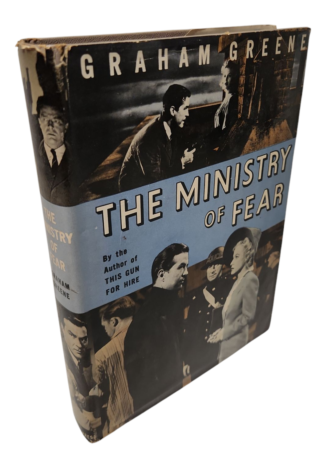 Graham Greene. The Ministry of Fear: An Entertainmant. Garden City: Sun Dial Press, 1944. Wartime motion picture edition. Octavo. 239pp. Publisher?s grey hardcover paper boards, stamped in blue to spine and front cover, original dust jacket.