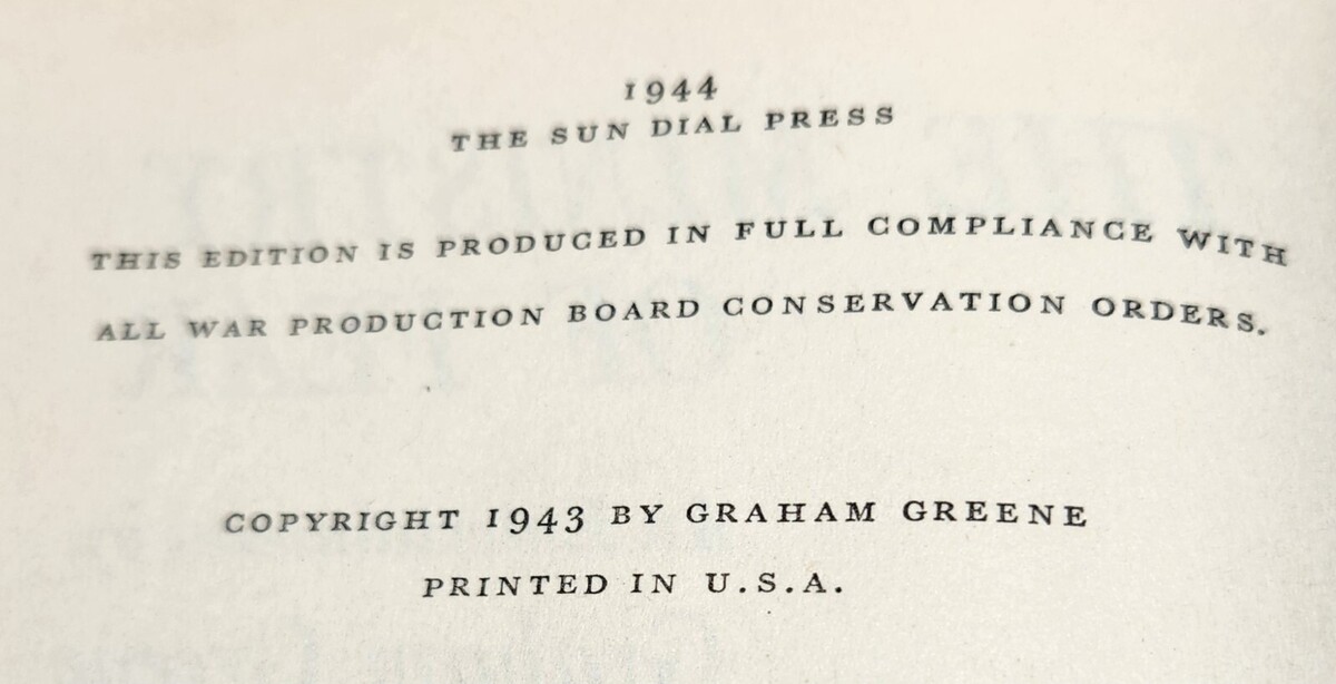 - Wartime Edition Graham Greene The Ministry of Fear Sun Dial Press 1944