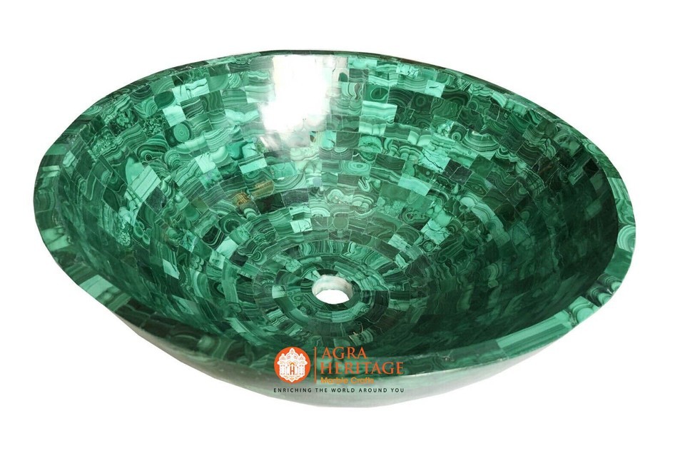 - Wash Basin Sink Handmade Malachite Stone Round Hotel &Restaurant Bathroom Decor