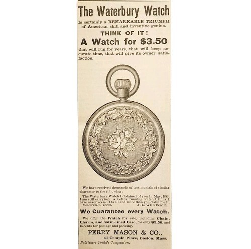 - Waterbury Watch 1885 Advertisement Victorian Perry Mason Jewelry ADBN1A19