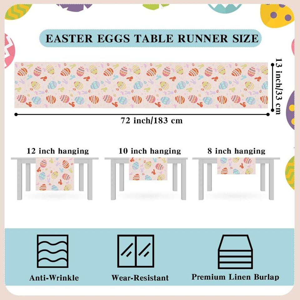 Suitable Size: This easter runner for table measures about 13 x 72 inch/33 x 183 cm, long enough appropriate for a rectangle table or round table that can seat 4-8 people, match your table better, suitable for using in party or family gathering and give you a delightful dining experience. Our table runner can also decorate your home and parties, bring beautiful colors and create abundant festive atmosphere