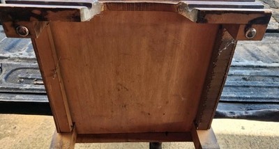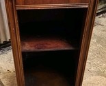 Neat vintage waterfall style shelf or cubby. Looks to maybe have been a small night stand with drawers at some time. Converted into a shelf. Be great for a den for books or other things. Measures 27.25 inches tall. 15 inches wide. 14.25 inches deep. Has wear from age and use.