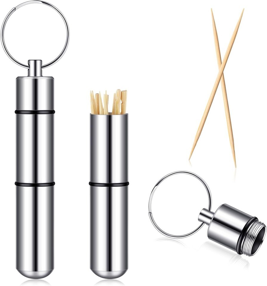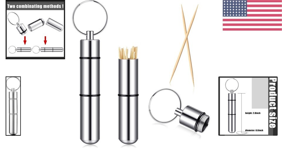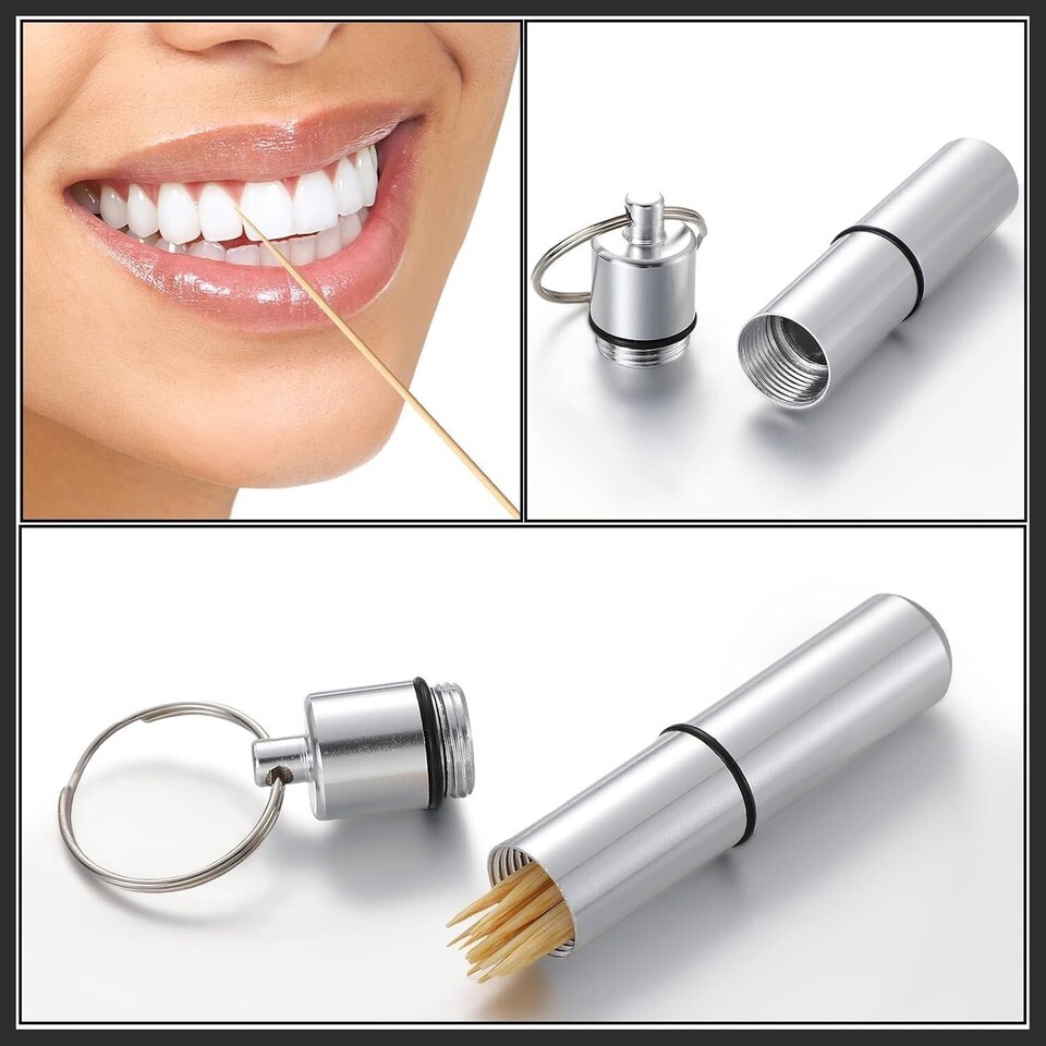 - Waterproof Aluminum Toothpick Holder with Key Ring - Portable 3-Compartment Case