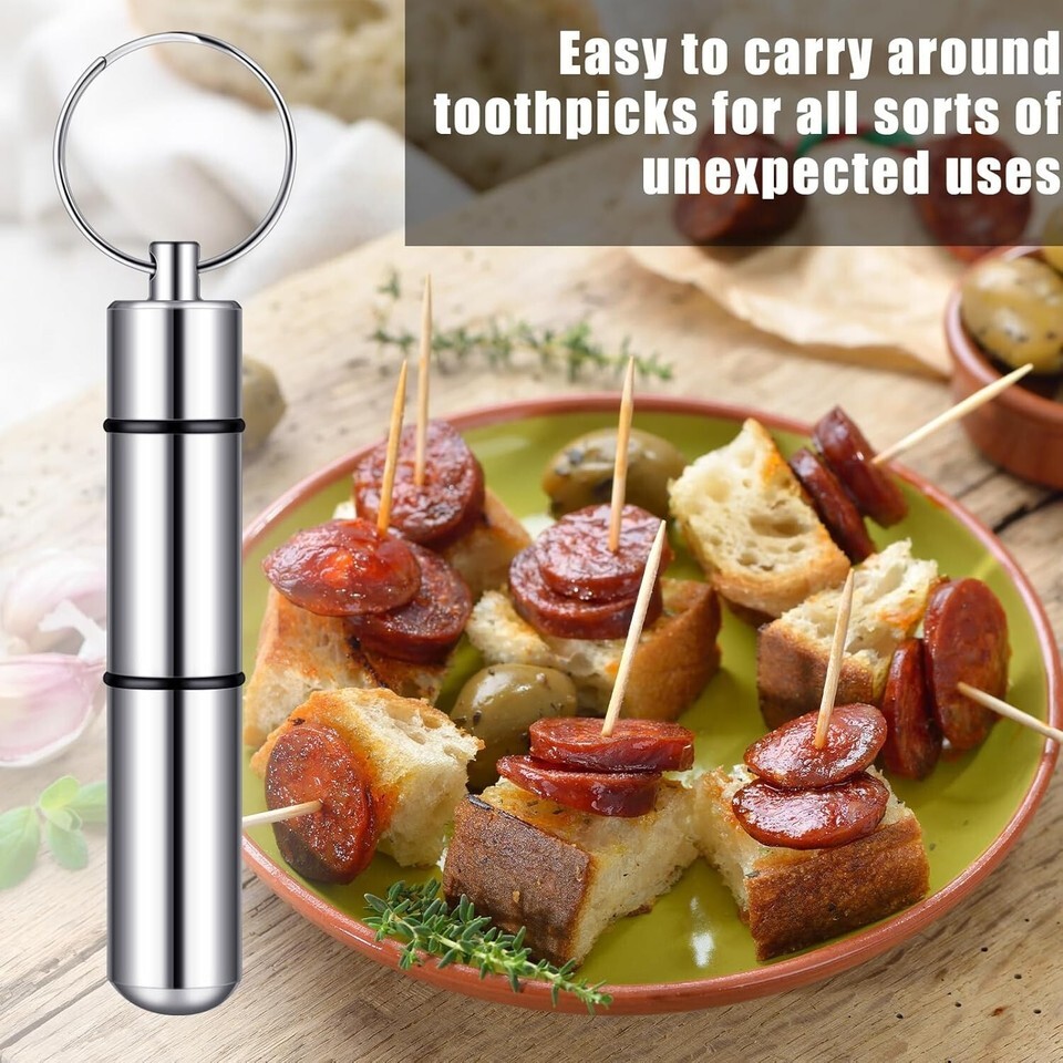 Durable and Lightweight: Made from aluminum alloy, this toothpick holder can comfortably store approximately 15 to 18 pieces of toothpicks without adding bulk to your pocket or bag.