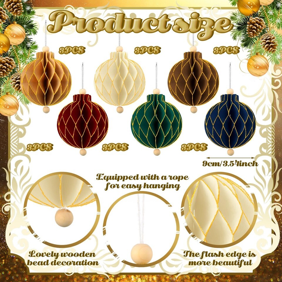 Easy Installation: the vintage Christmas honeycomb ornament comes with a string for easy hanging; Not just for Christmas, these charming centerpieces can amp up the festive mood for weddings, parties, or other celebratory events; You can quickly hang them up and remove them after, making the setup process easy