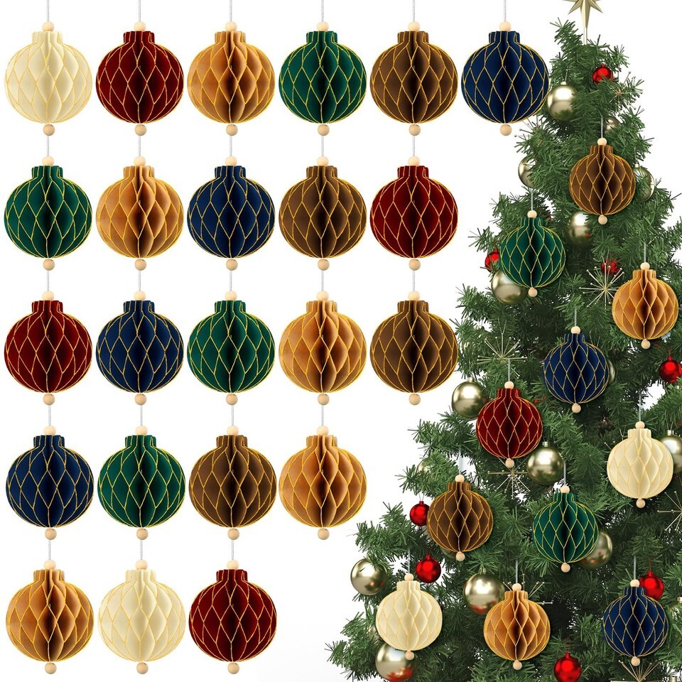 - Watersay 18 Pc Glitter Christmas Honeycomb Ornaments Vintage Neutral Decor