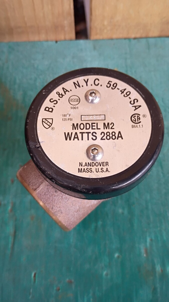 - Watts 1-1/4" 288A M2 Anti-Siphon Vacuum Breaker 125PSI 180◦F