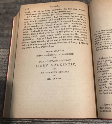Waverley By Sir Walter Scott TIS Sixty Years Since 3rd Edition Red leather. This volume being respectfully inscribed to Our Scottish Addison Henry Mackenzie by An Unknown admirer of His Genius. Approx size of the book : 6? x 4.5? x 1?. Total number of pages : 574