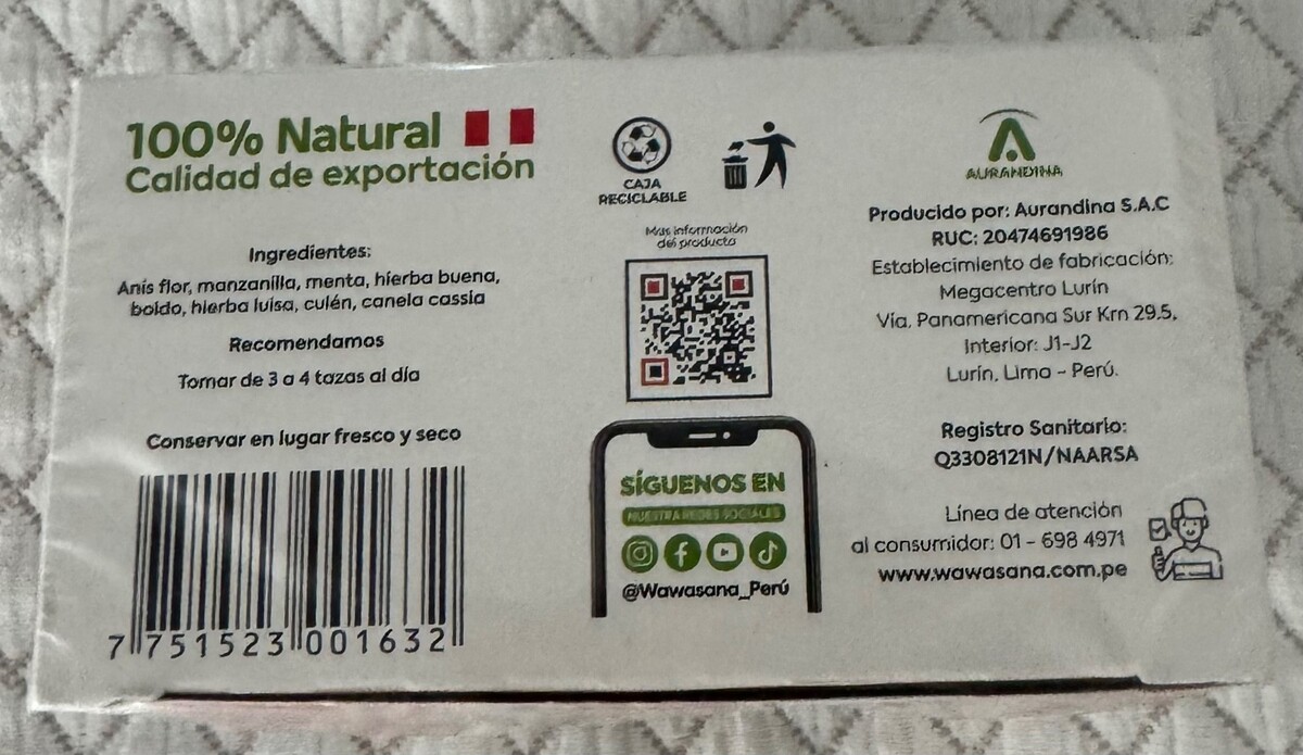 - Wawasana Digestivo 50 Tea bags Peruvian Tea 100% Natural Mix Herbs