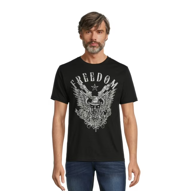 Way to Celebrate Men’s 4th of July Freedom Rocks Raptor Tee, Black Size XS(30-32