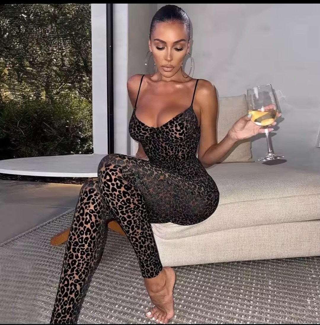 - Wear A Second Skin Spotted Cheetah Stretch Mesh Long Legged Sleeveless Body Suit