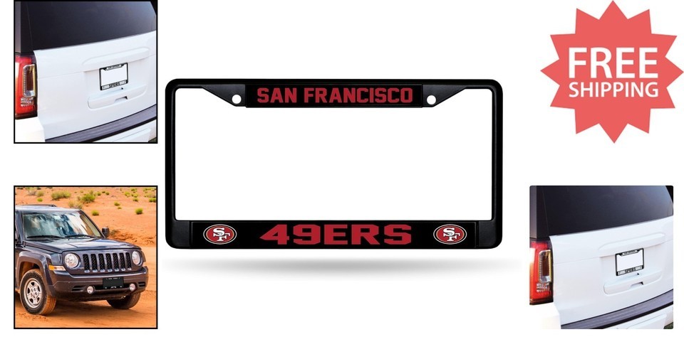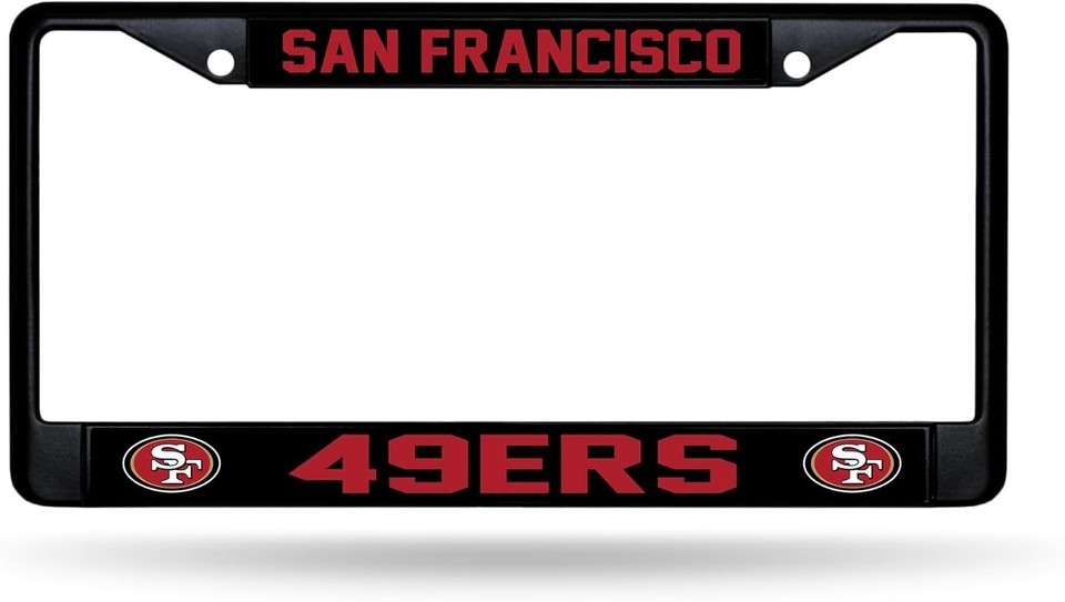 - Weather-Resistant San Francisco 49ers Car Frame – NFL Black Chrome 12" x 6"