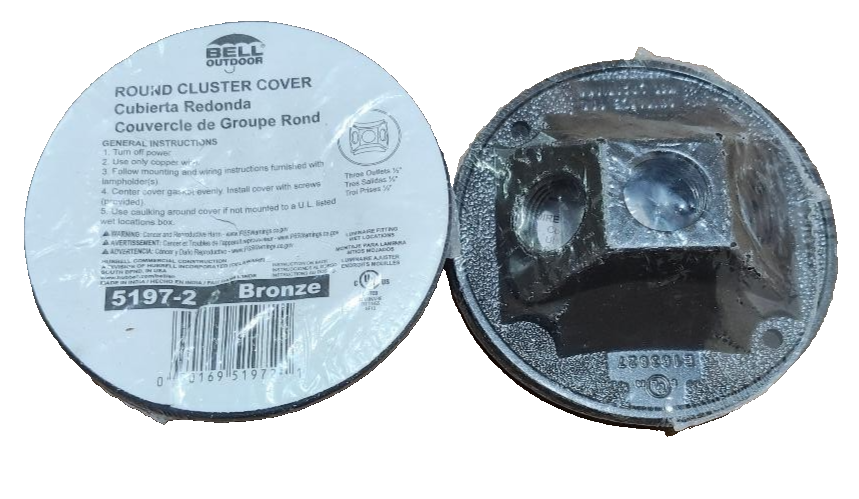 Hubbell-Raco 5197-2 Weatherproof Cover, (3) 1/2" Outlet x 4.125" Dia. Bronze (2-PACK)