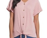Weatherproof Vintage ~ Tie Front ~ SIZE LARGE ~ V-Neck ~ Braided Knit Top ~ PINK