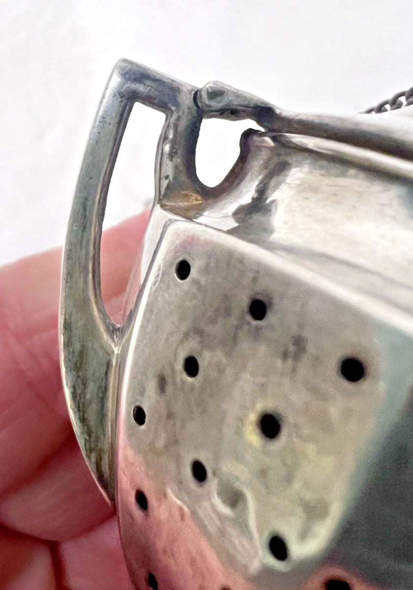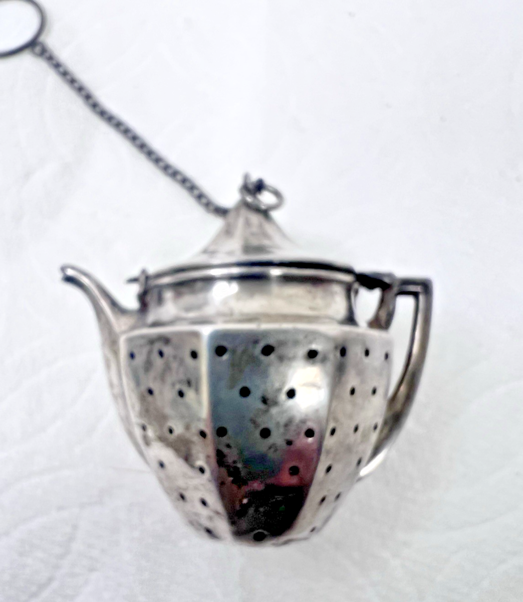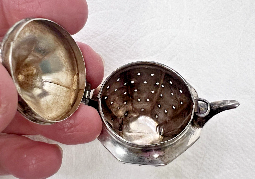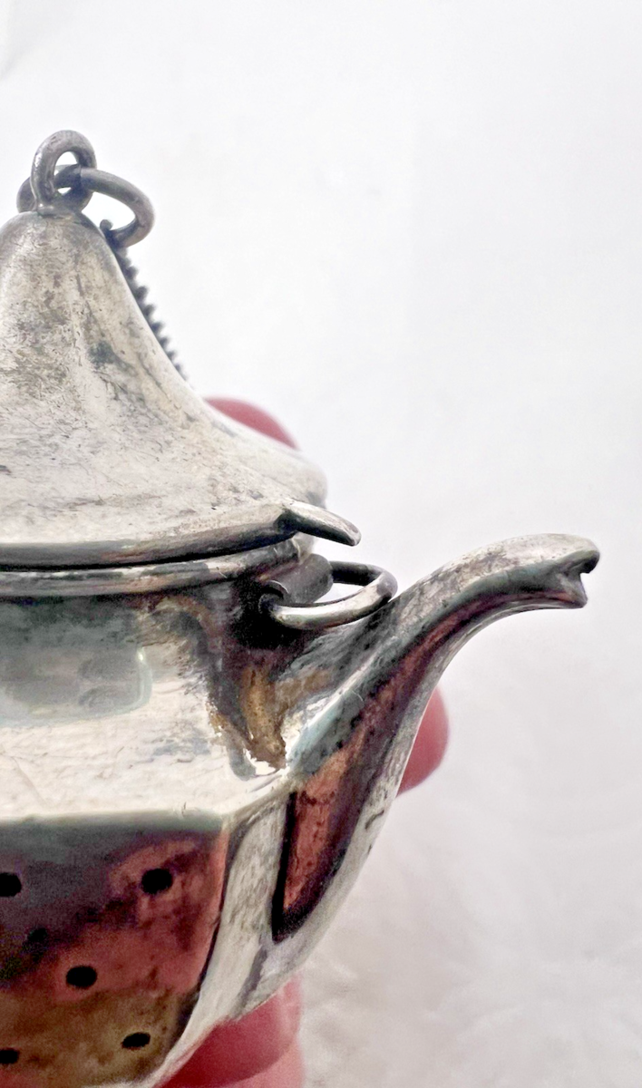 - Webster Company Sterling Silver Teapot Shaped Loose Leaf Tea Ball w Finger Ring