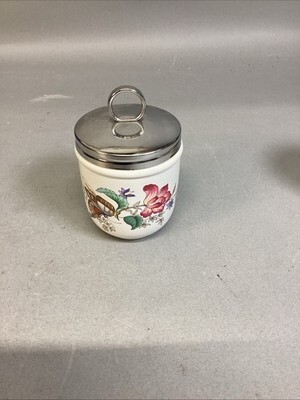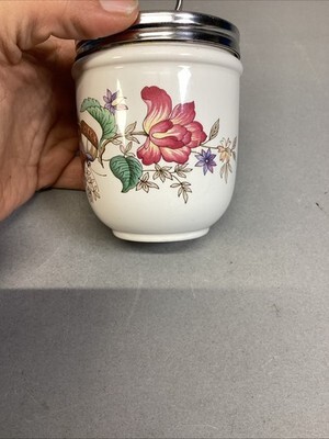 Wedgwood Egg Coddlers/Lids Oven To Table Charnwood England Floral Butterflies. Both are in very good condition. These measure 4.5?H to the top of the lid. Without the lid, it?s 2.75?Hx2.5?D