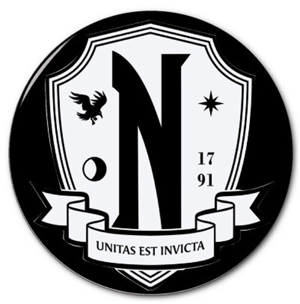 This listing is for A WEDNESDAY ADDAMS AT NEVERMORE ACADEMY LOGO 3" Safety Pinback Button for a Halloween Costume Cosplay or Game Night Prop. YOUR ORDER WILL SHIP WITHIN 1 DAY FREE FIRST-CLASS MAIL FROM ARIZONA, UPGRADES IN SHIPPING SPEED ARE AVAILABLE AT CHECKOUT IF NEEDED DEPENDING ON YOUR LOCATION.