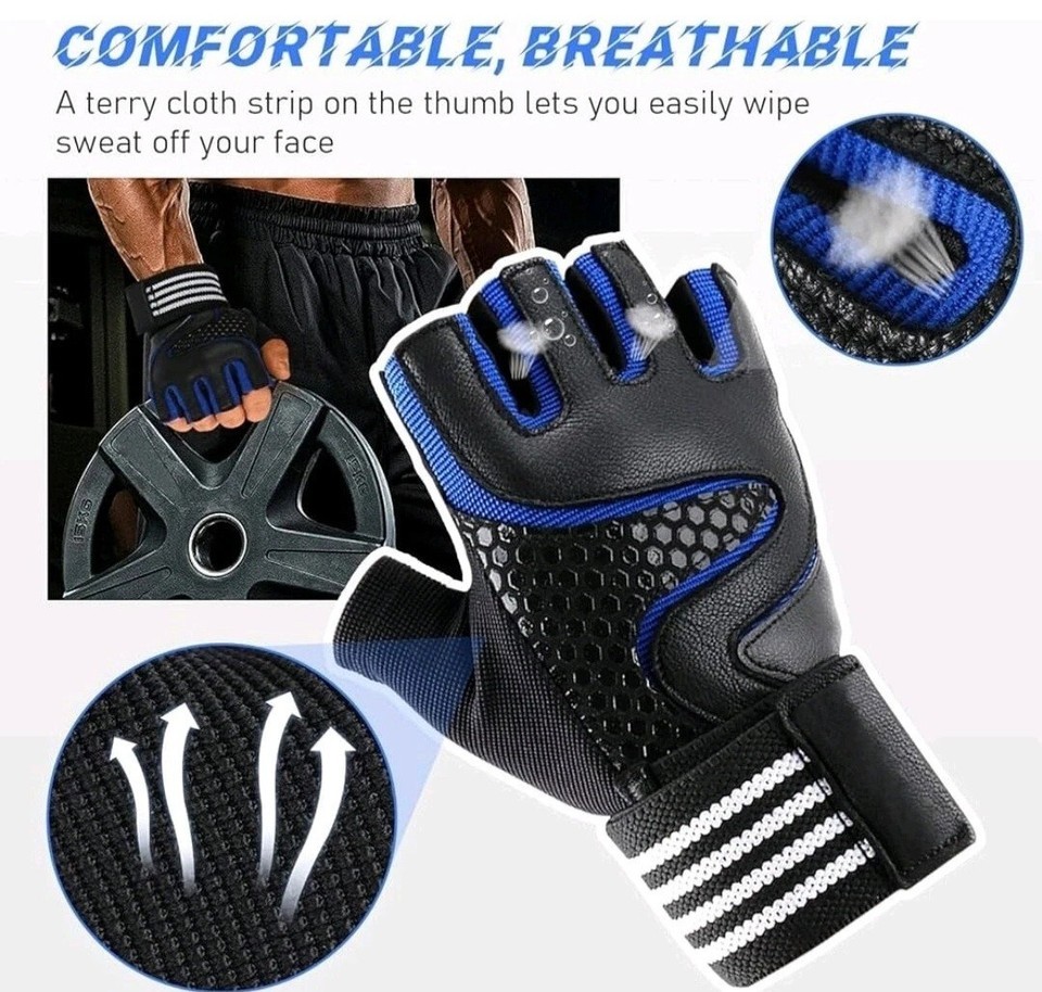 Weight Lifting Gym Glove Fitness Training Workout Leather Wrist Wraps Straps XL